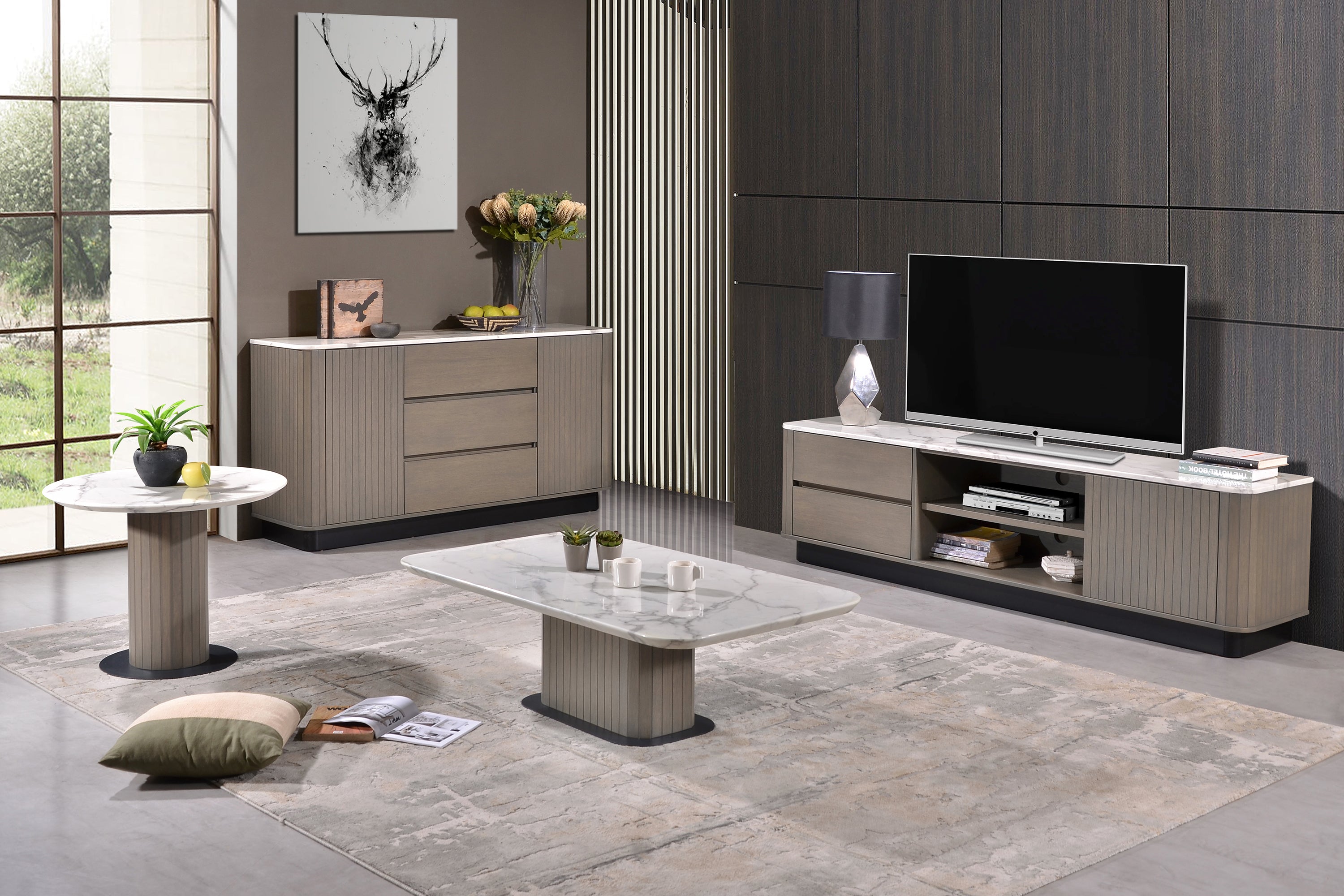 Criterion Eucla Buffet, Side Board 1600mm Semi-Assembled, 20mm Laminated Marble Top, Wood Plinth. KSK Slate Wood Veneer