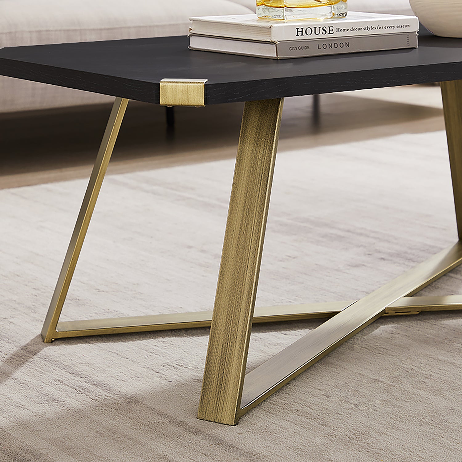 Criterion Capri Coffee Table 1100mm Rectangular Table, Gold Metal Leg and Metal Highlights Black Oak