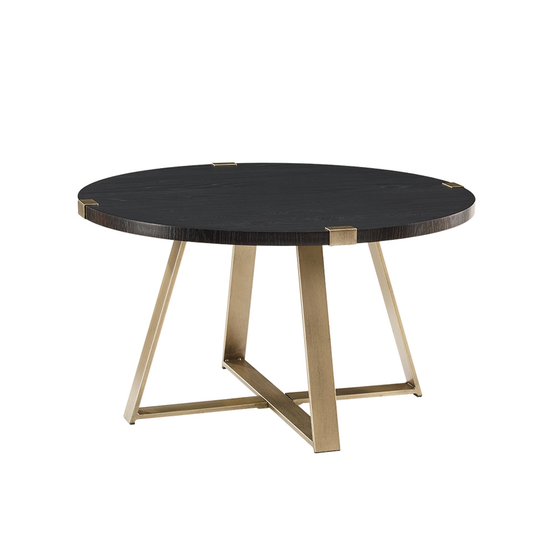 Criterion Capri Coffee Tables 770mm Round Table, Gold Metal Leg and Metal Highlights Black Oak