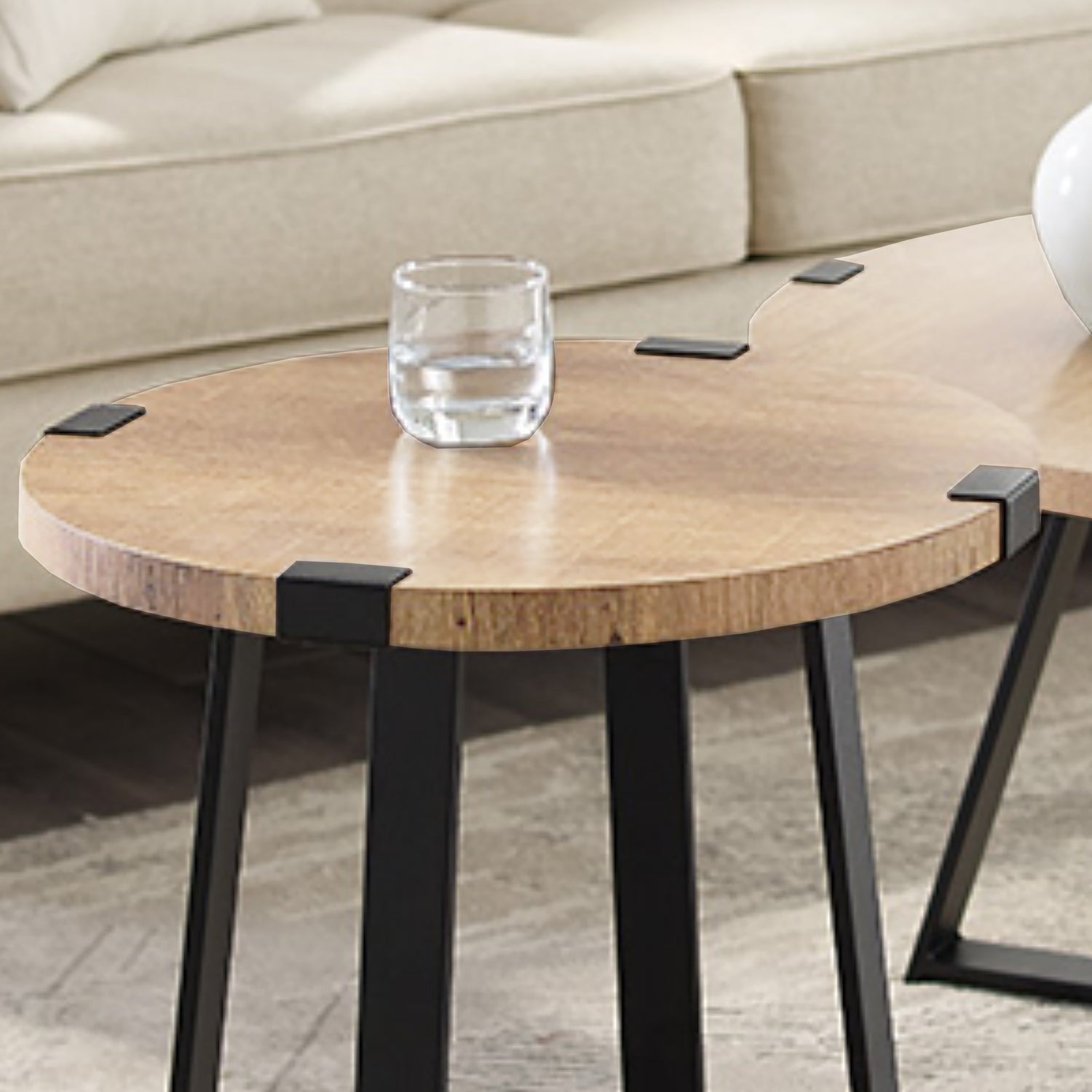 Criterion Capri End Table 445mm Round Table, Black Metal Leg and Metal Highlights Oak