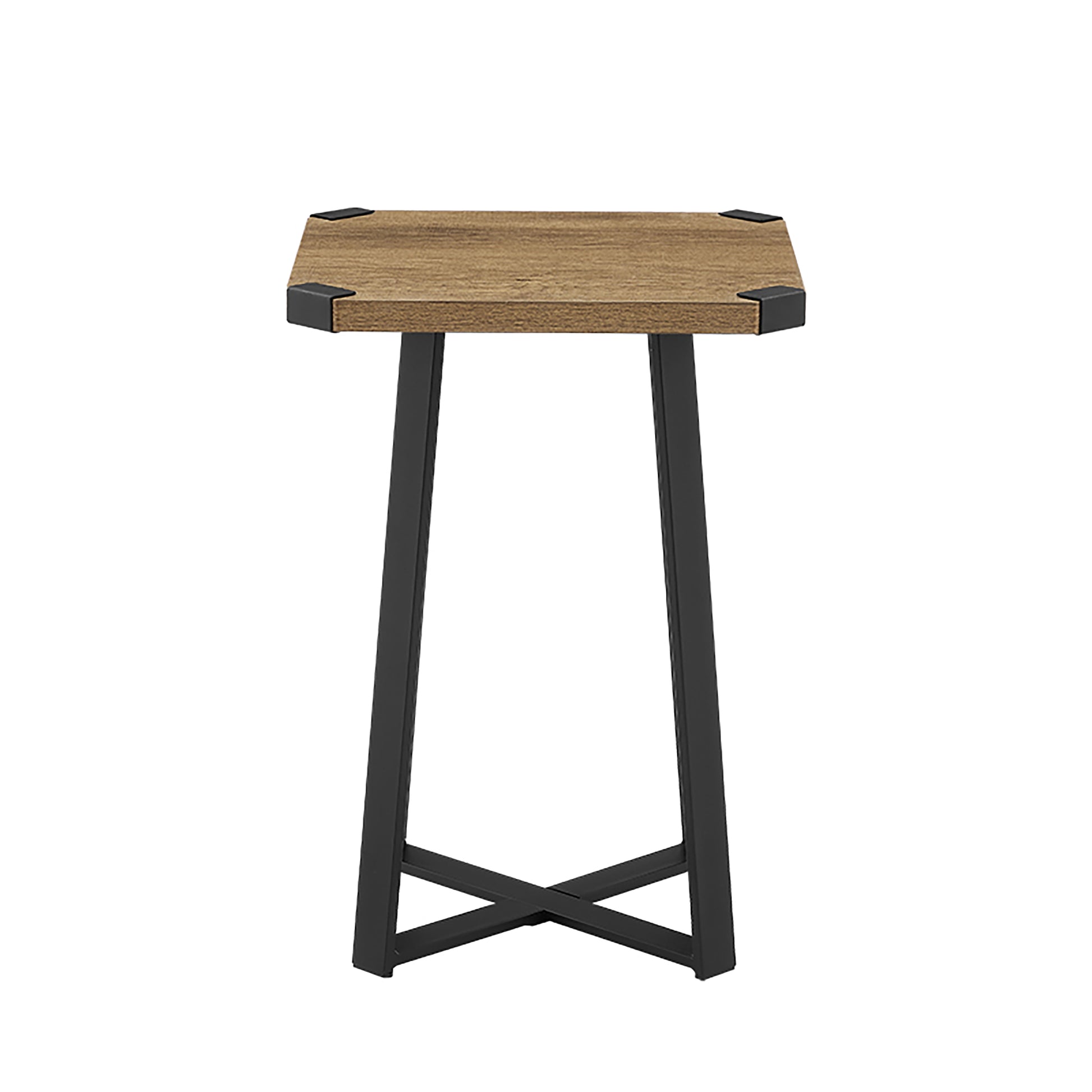 Criterion Capri Side Table 400mm Square Table, Black Metal Leg and Metal Highlights Dark Oak