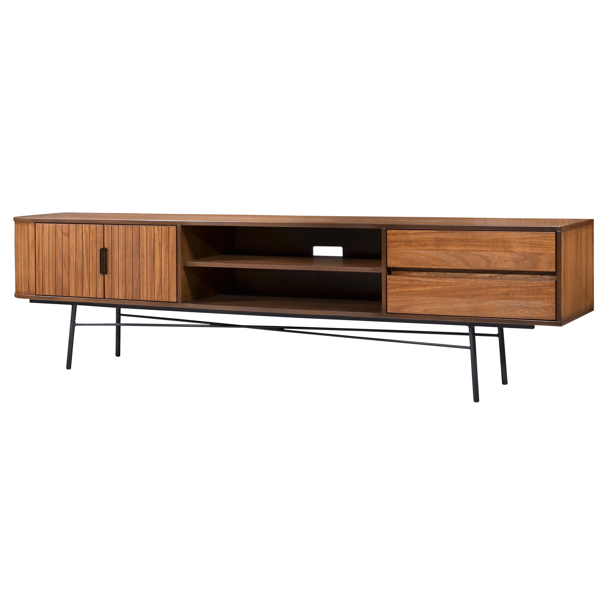 The Criterion Albany Entertainment Unit is perfect for any entertainment setup. It provides two drawers, two doors, and two shelves to store components. The ash wood veneer finish and powder-coated steel legs give it a stylish and resilient look. It also includes an anti-tip kit and a 12-month warranty.