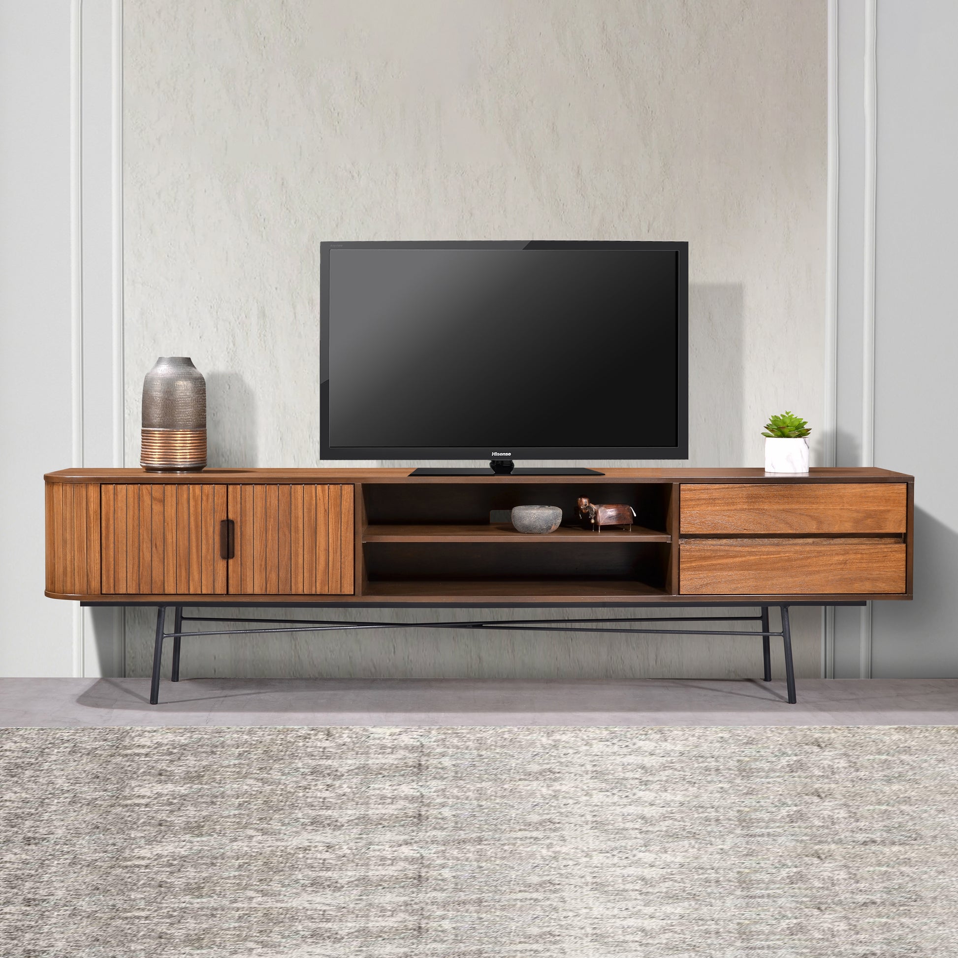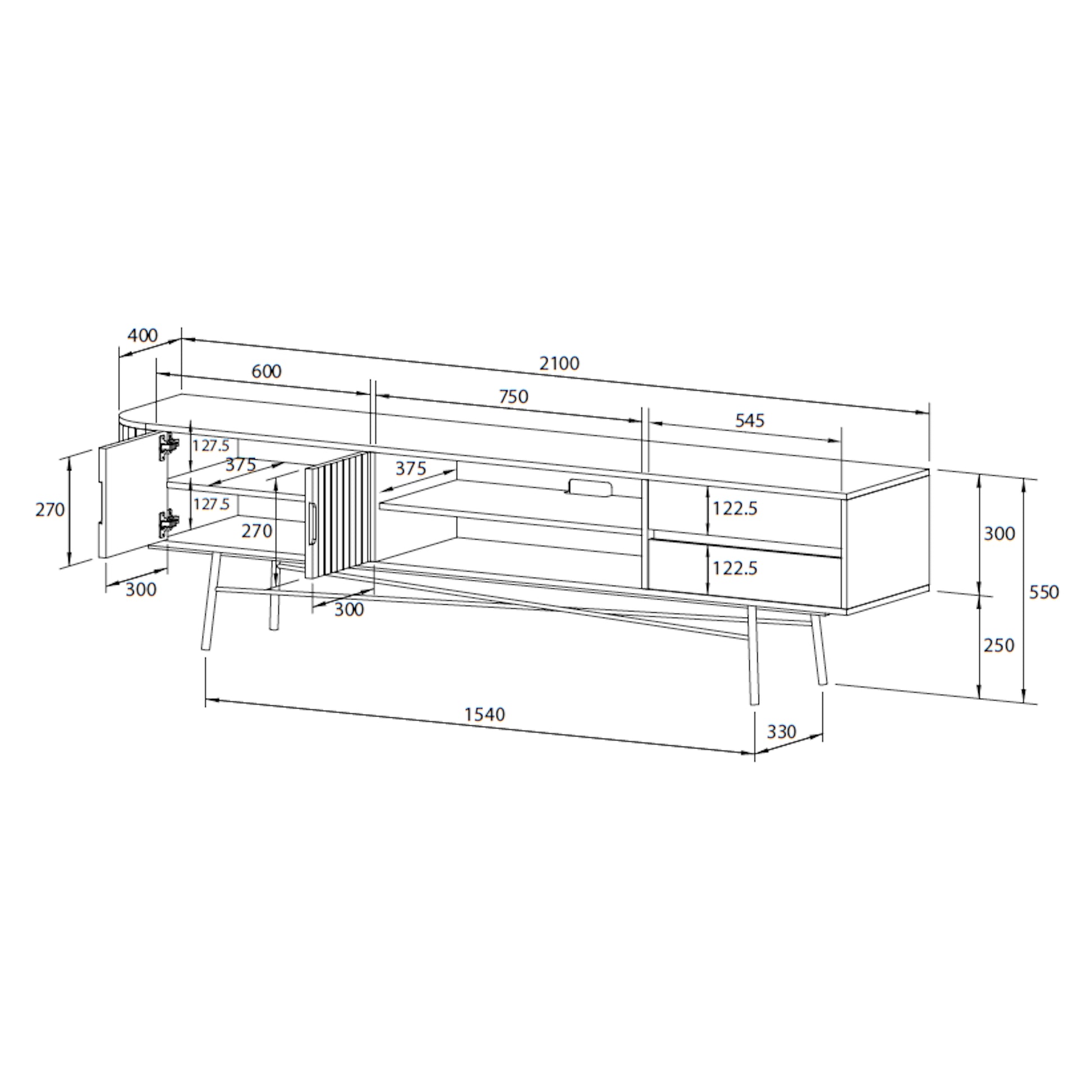 Criterion Albany Entertainment Unit, TV Cabinet 2100mm Semi-Assembled, Powder Coated Steel Legs Dark Ash