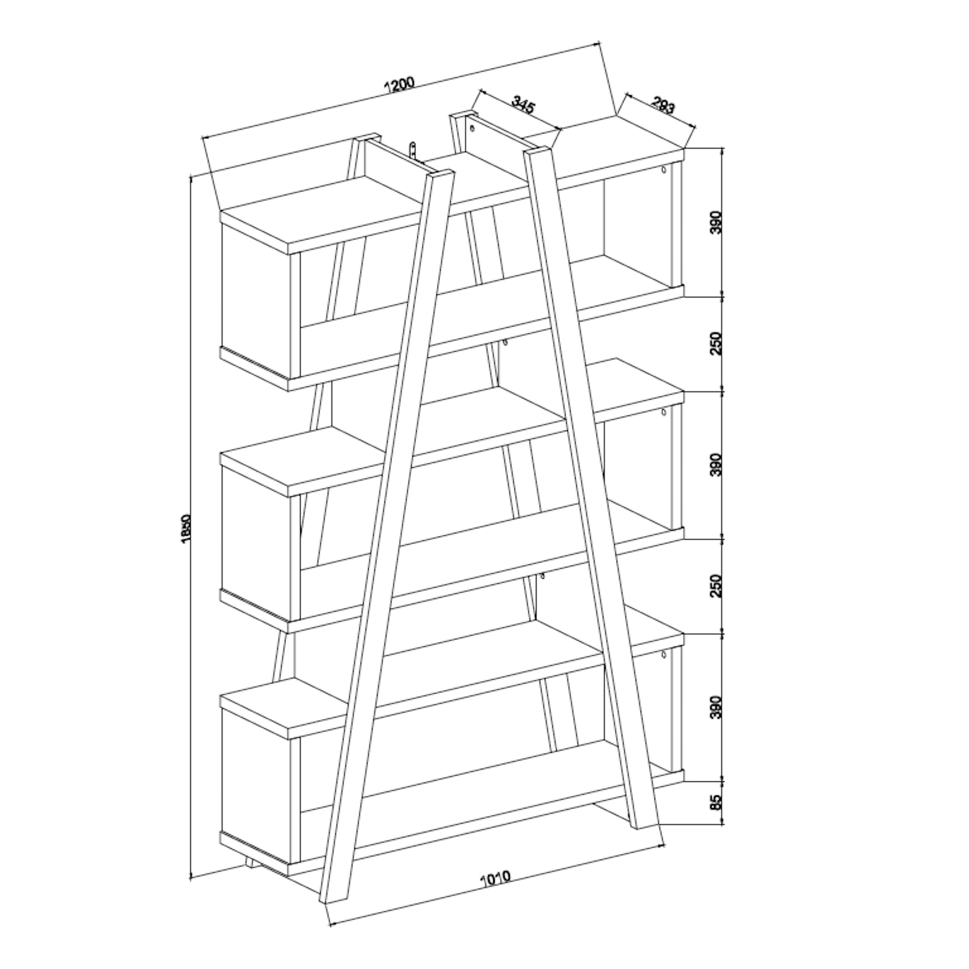 Bookcase Top Size: 1200(W) x 293(D) (less supports space)