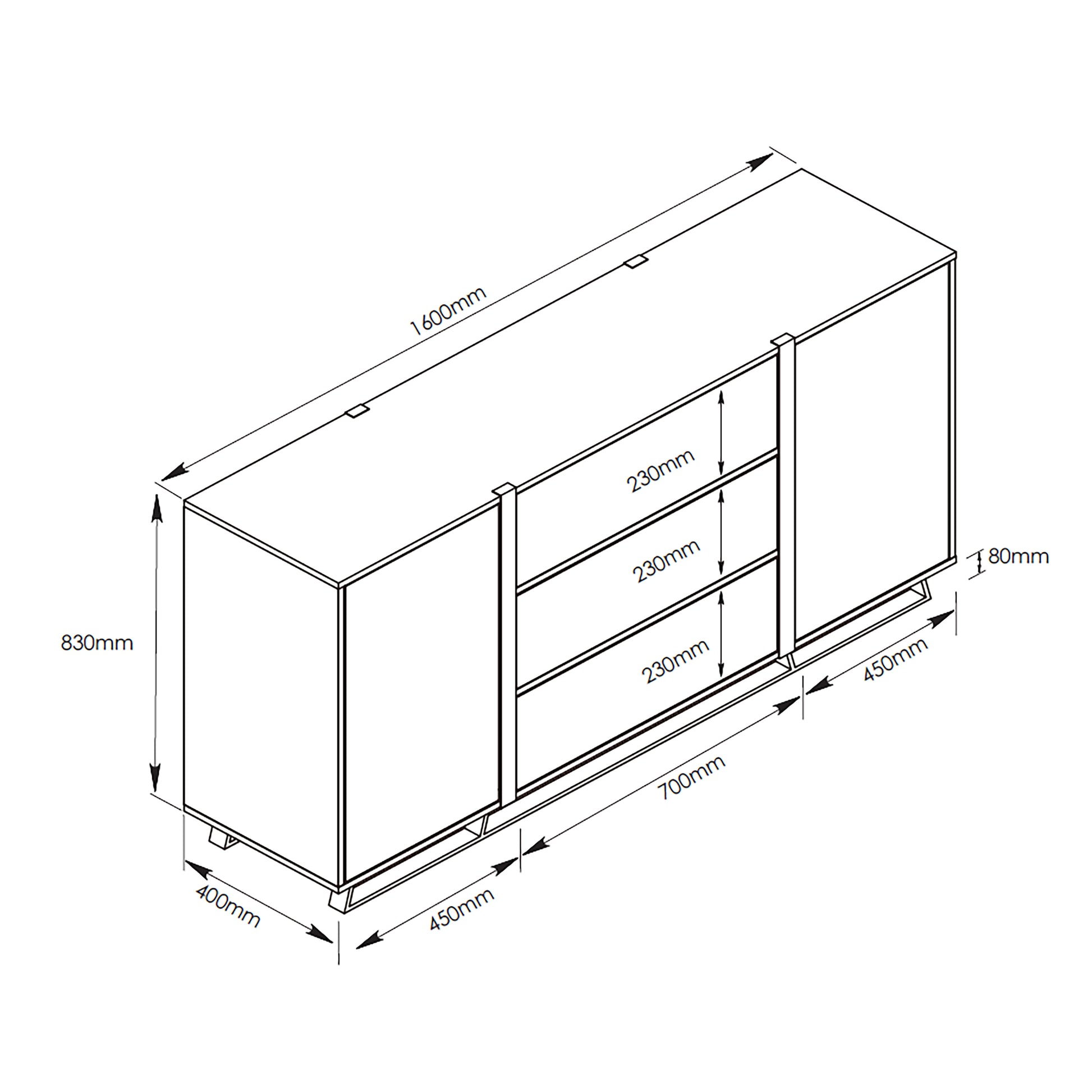 Drawer Front Size: 700(W) x 230(H) mm x 3