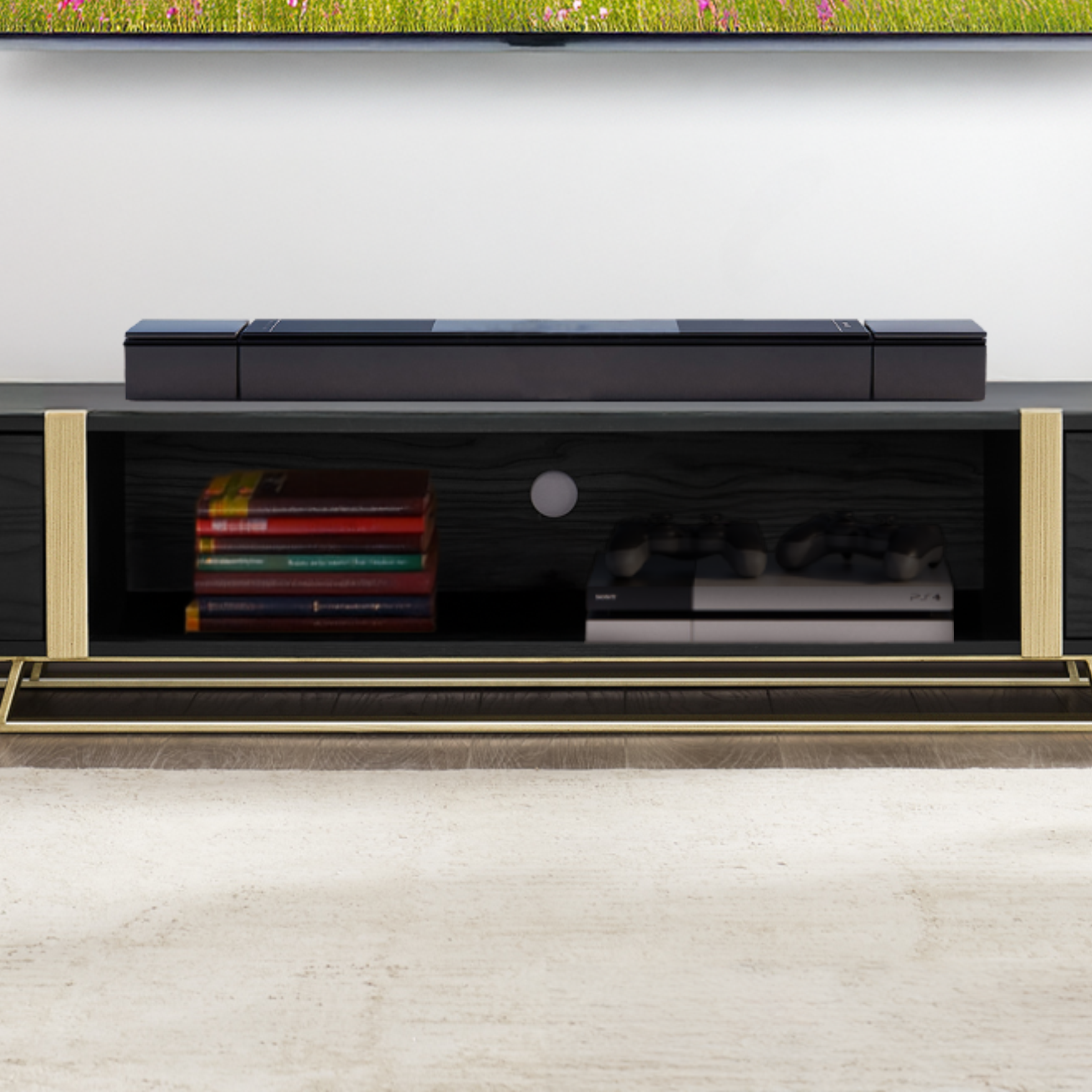 Criterion Capri TV Unit, Entertainment Cabinet 2000mm Low Line Black Oak Gold