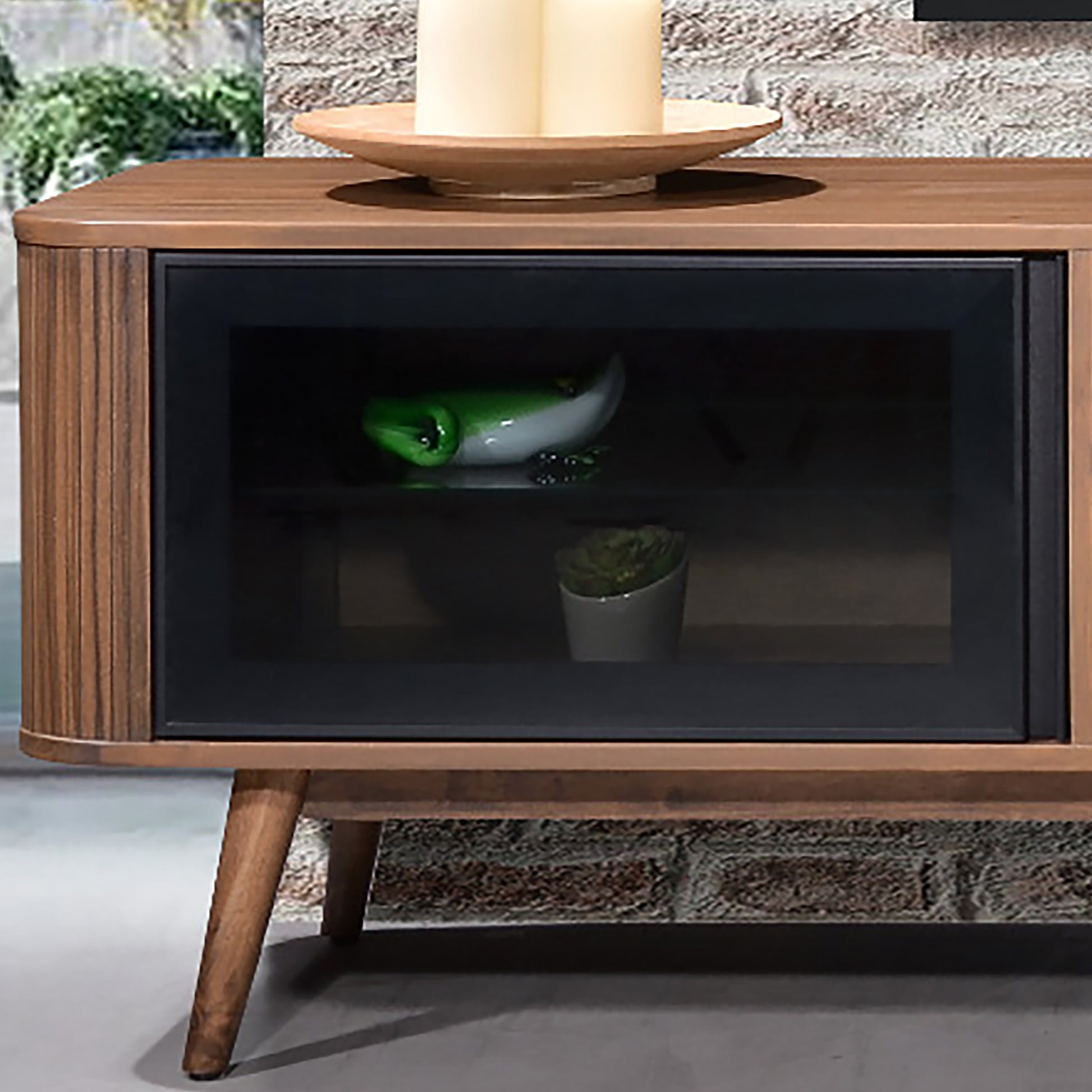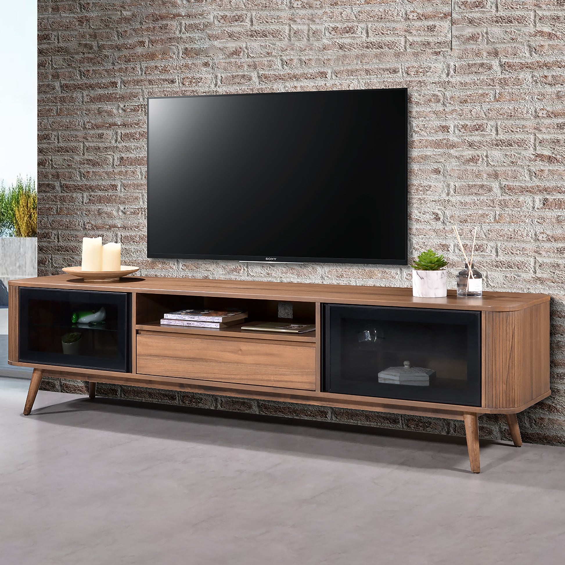 Criterion Denham Entertainment Unit, TV Cabinet 2000mm Semi-Assembled, Solid Rubber Wood Legs Light Walnut Wood Veneer