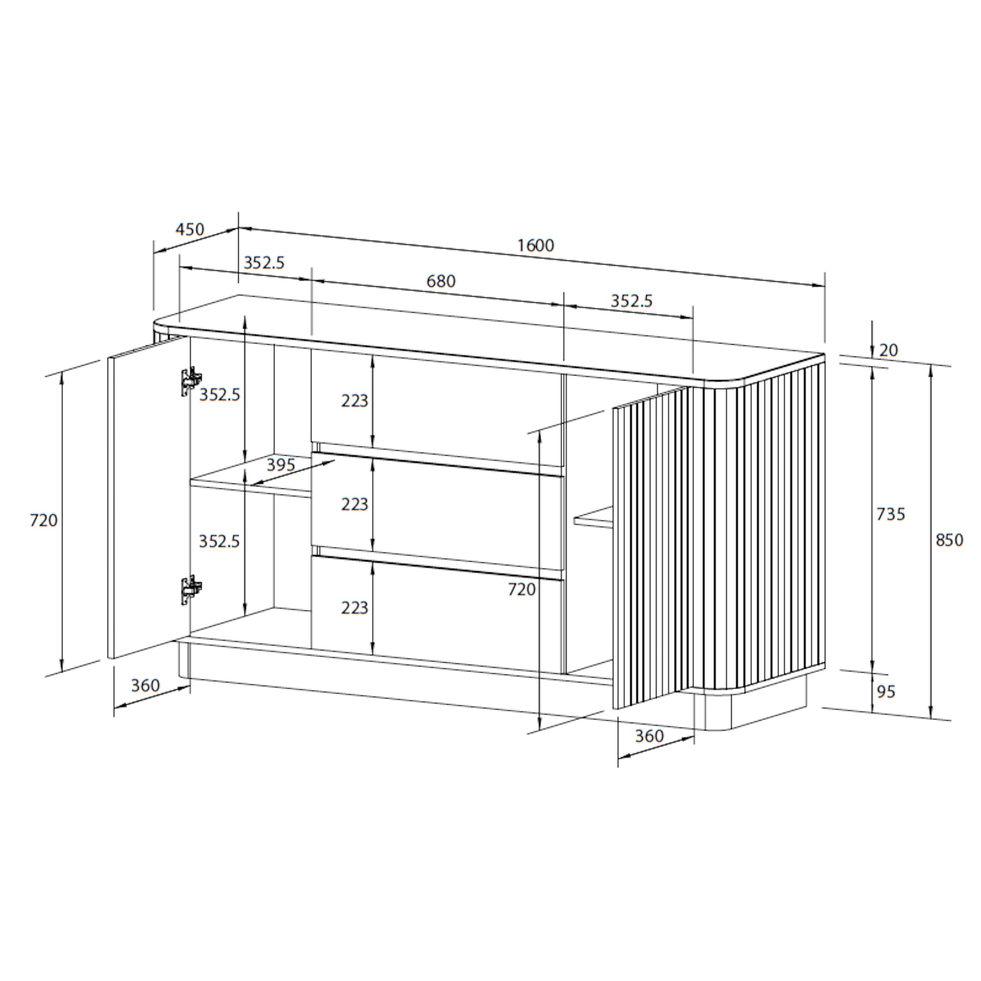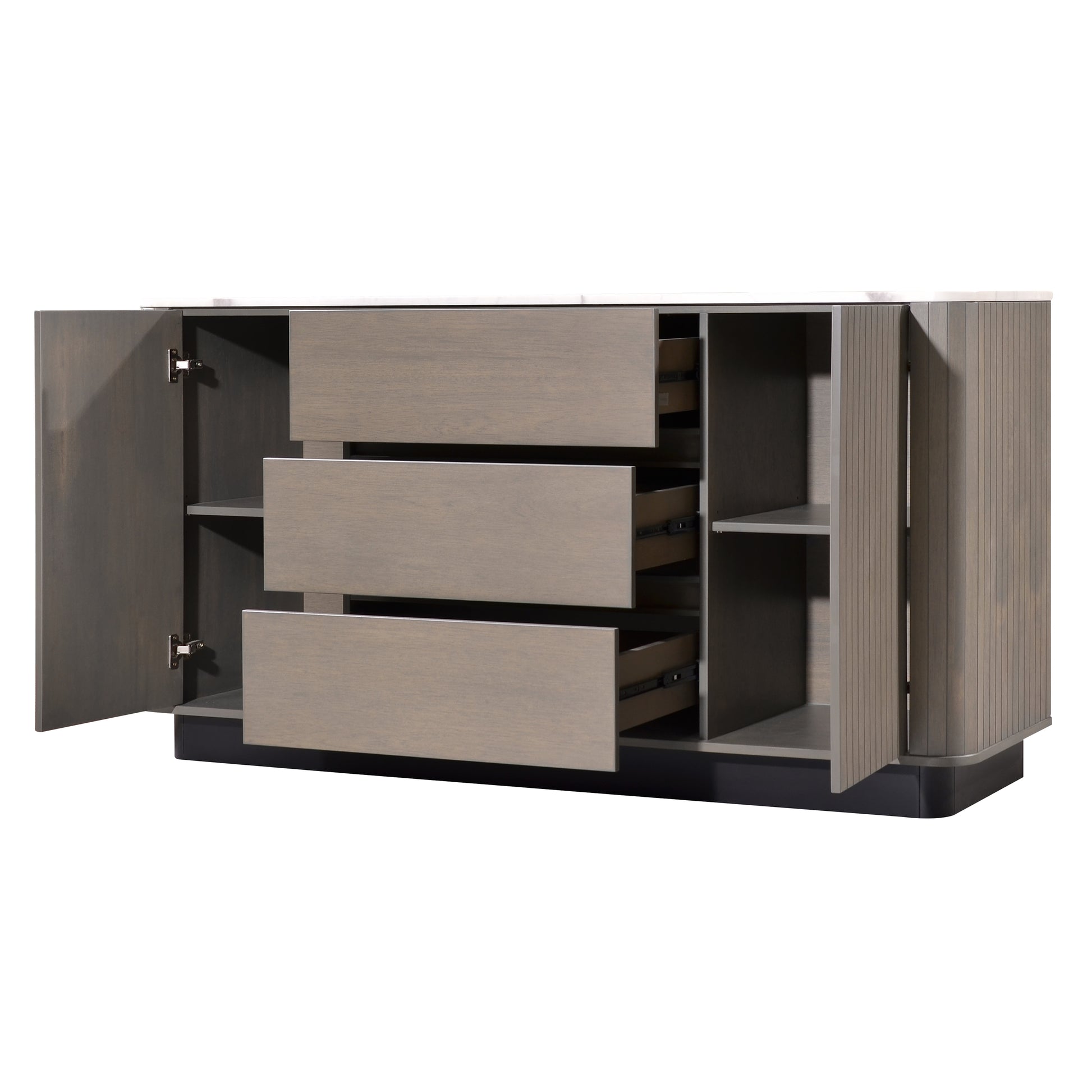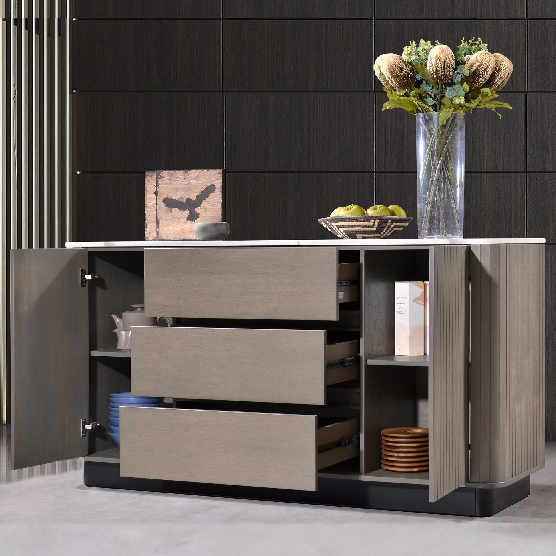 Criterion Eucla Buffet, Side Board 1600mm Semi-Assembled, 20mm Laminated Marble Top, Wood Plinth. KSK Slate Wood Veneer