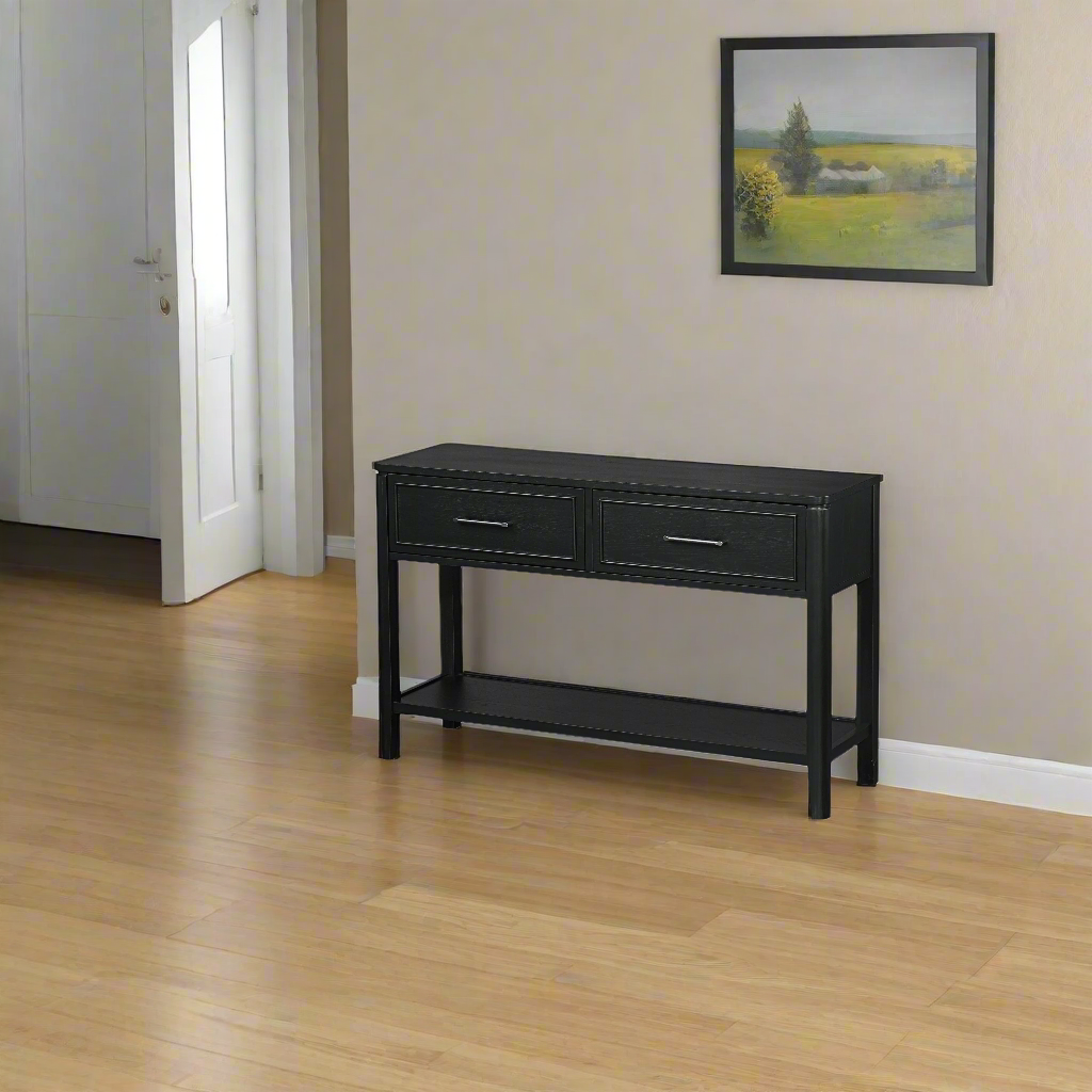 The Kennedy Console Table features plenty of storage for your home. With a full width bottom shelf. Two drawers, featuring telescopic ball bearing drawer runners so you can use all the space available in the drawers, with out the need to reach into the console table to access the back of the drawer. Along with its large table top, to store keys, bags, hats etc.