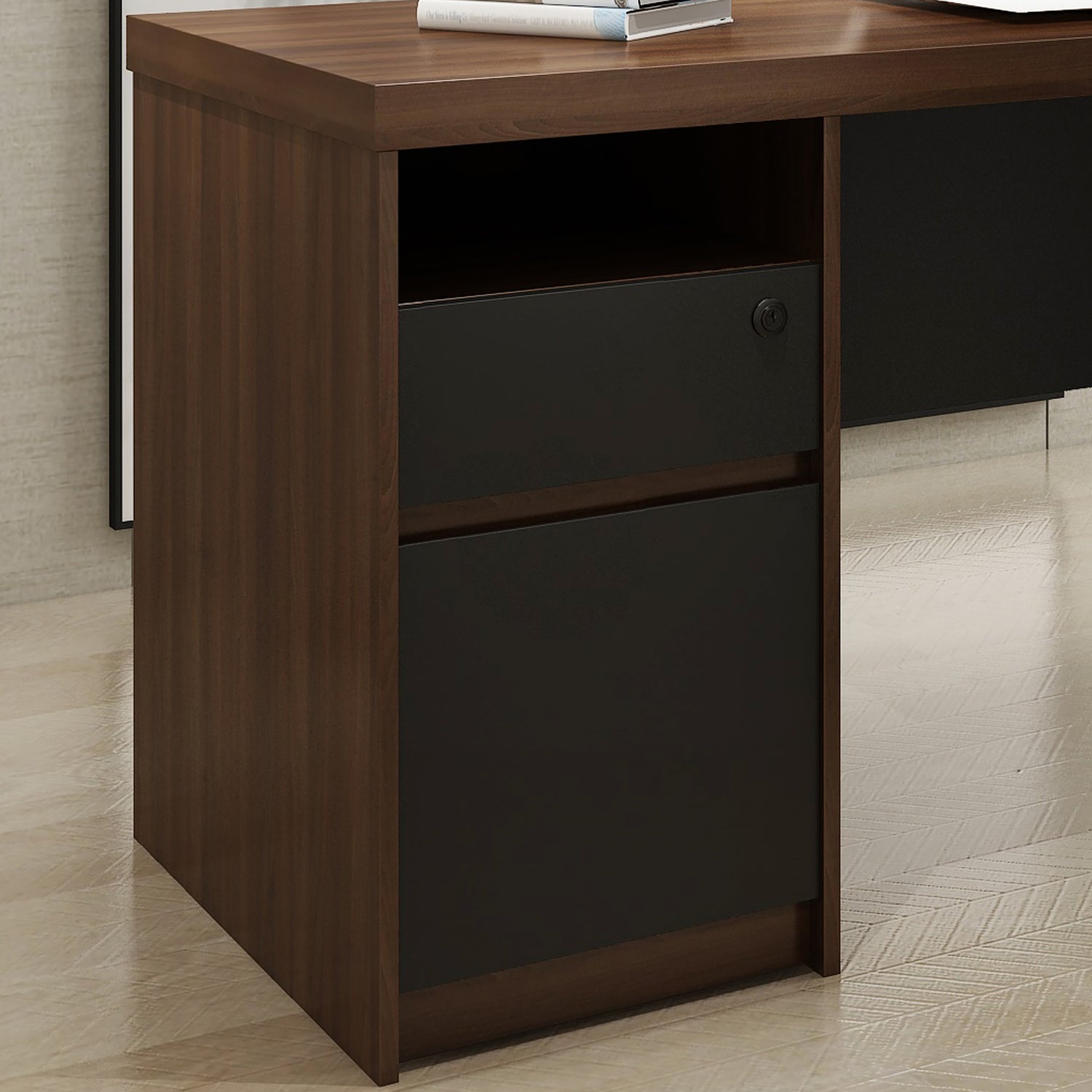 The Lucy Desk features a fixed Pedestal Leg with a Door, a lockable drawer and an open shelf space. Giving you plenty of storage options for your office space.