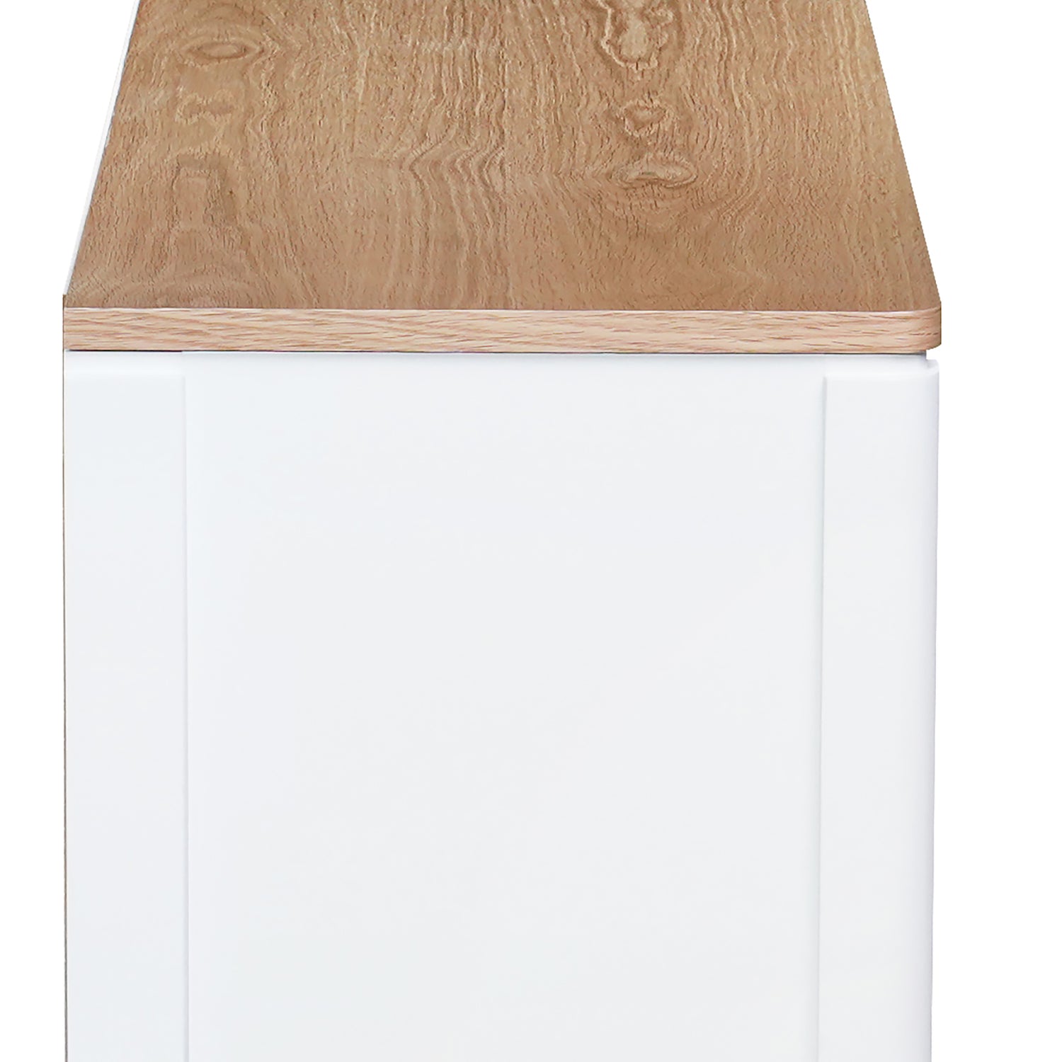 The fresh white cabinet of the Sorrento buffet adds a level of sophistication and style to your home as it contrasts nicely with the natural finish of the wood top. This piece will fit nicely in your dining room or kitchen.