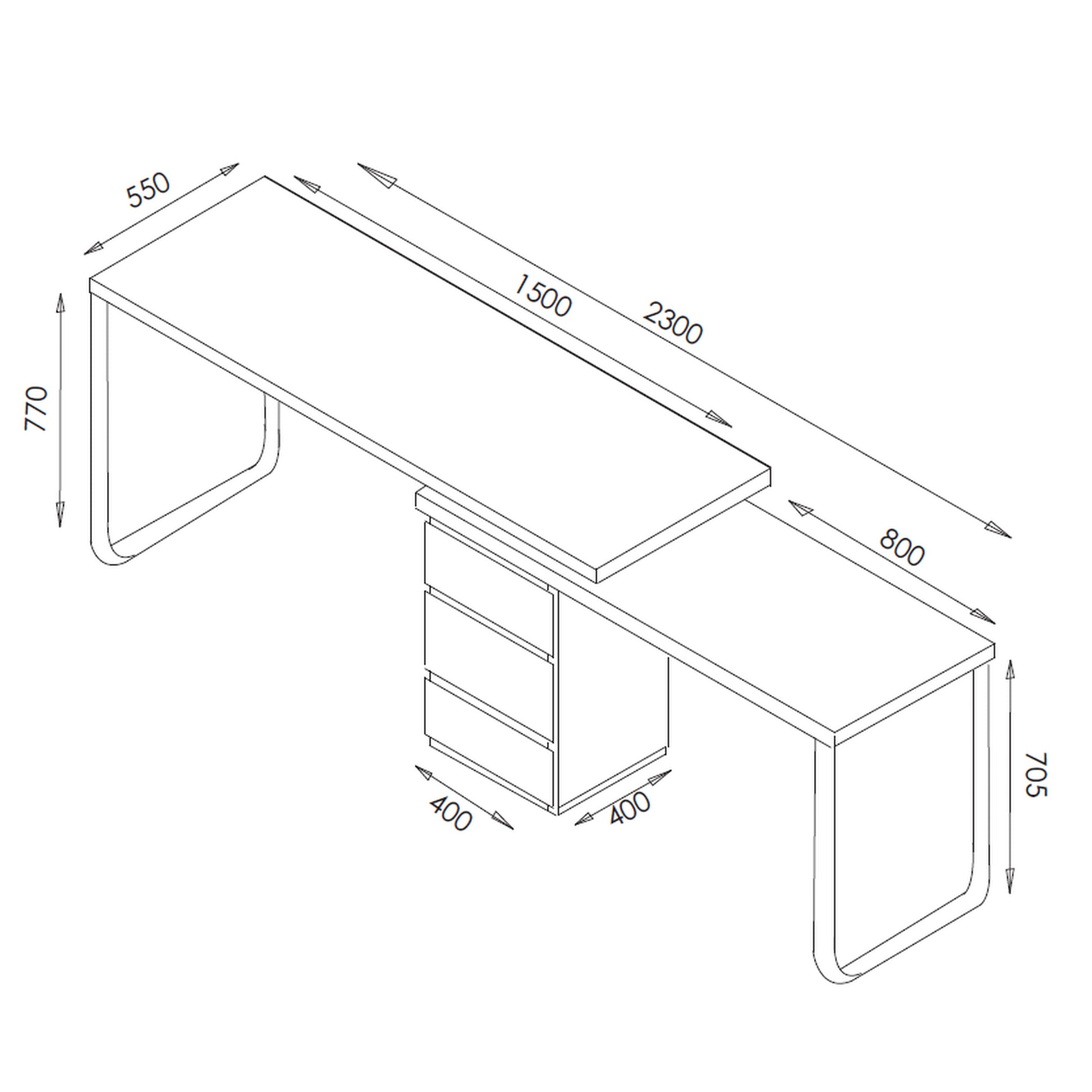 Desk Top Size: 1500-2300(W) x 550(D)mm