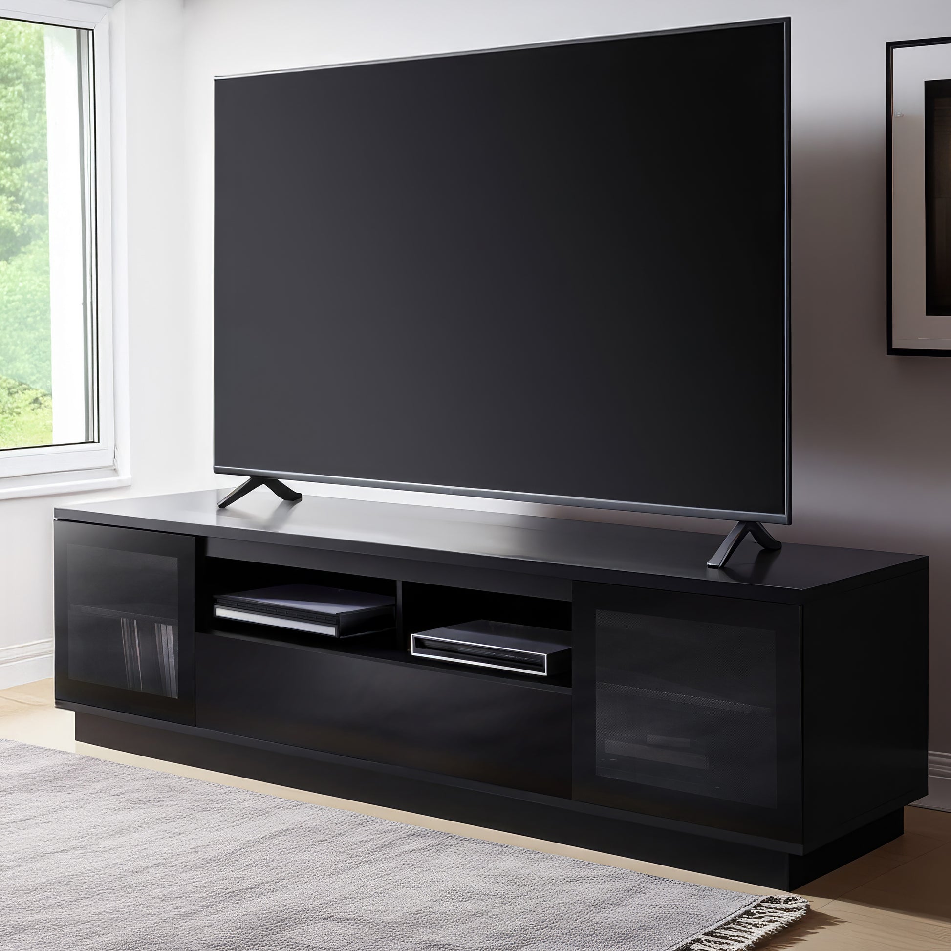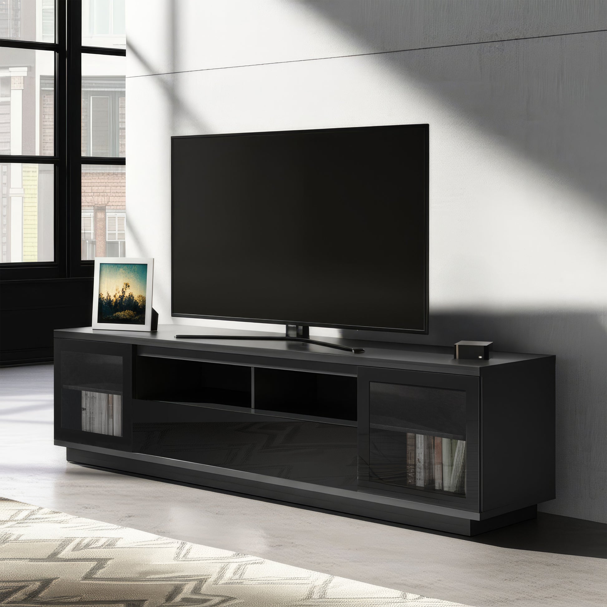 The Zaire 2200mm Black Entertainment Unit is sold Exclusively in Australia by Harvey Norman Furniture Stores. It comes Semi-Assembled ready to enjoy.