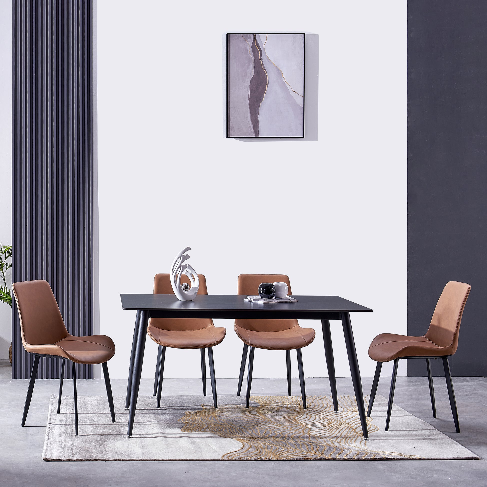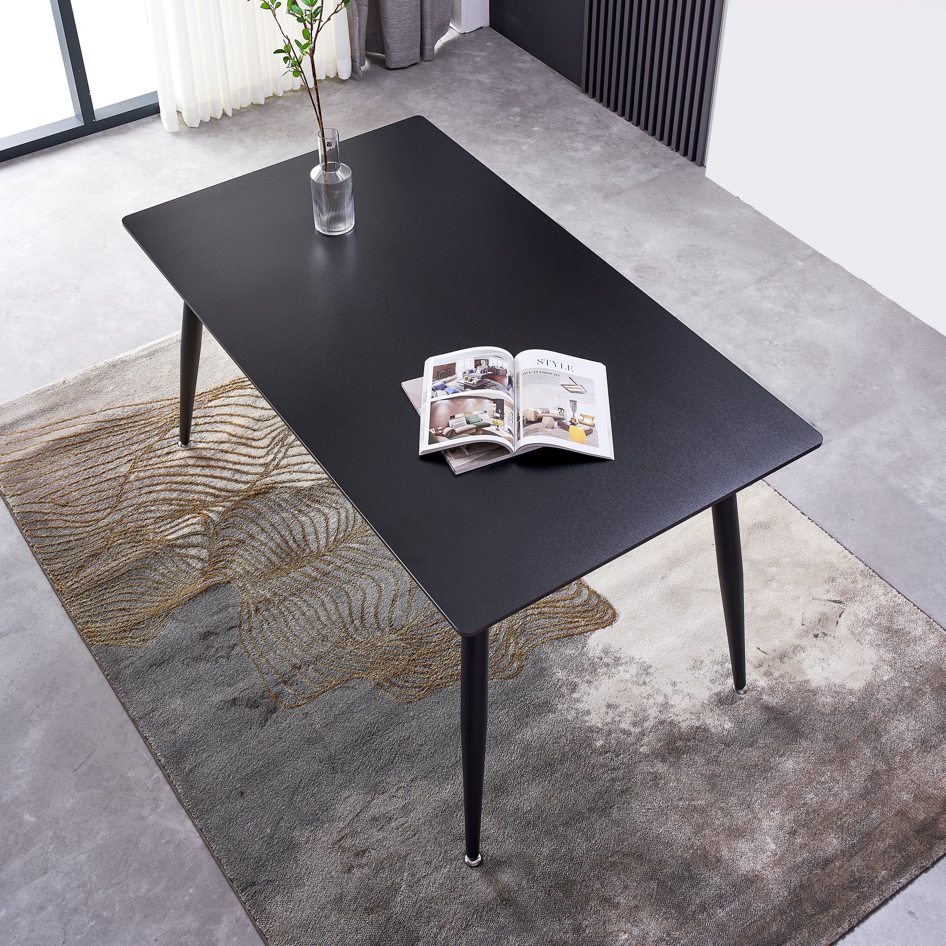 The Mendy Dining Table 1400mm Black Sintered Stone is a contemporary piece of furniture that features a modern, black sintered stone top atop a strong carbon steel frame. Enjoy the sophistication of this stone material, as sintered stone is incredibly durable and non-porous. Complement your dining table with the matching side and coffee table for a complete look.