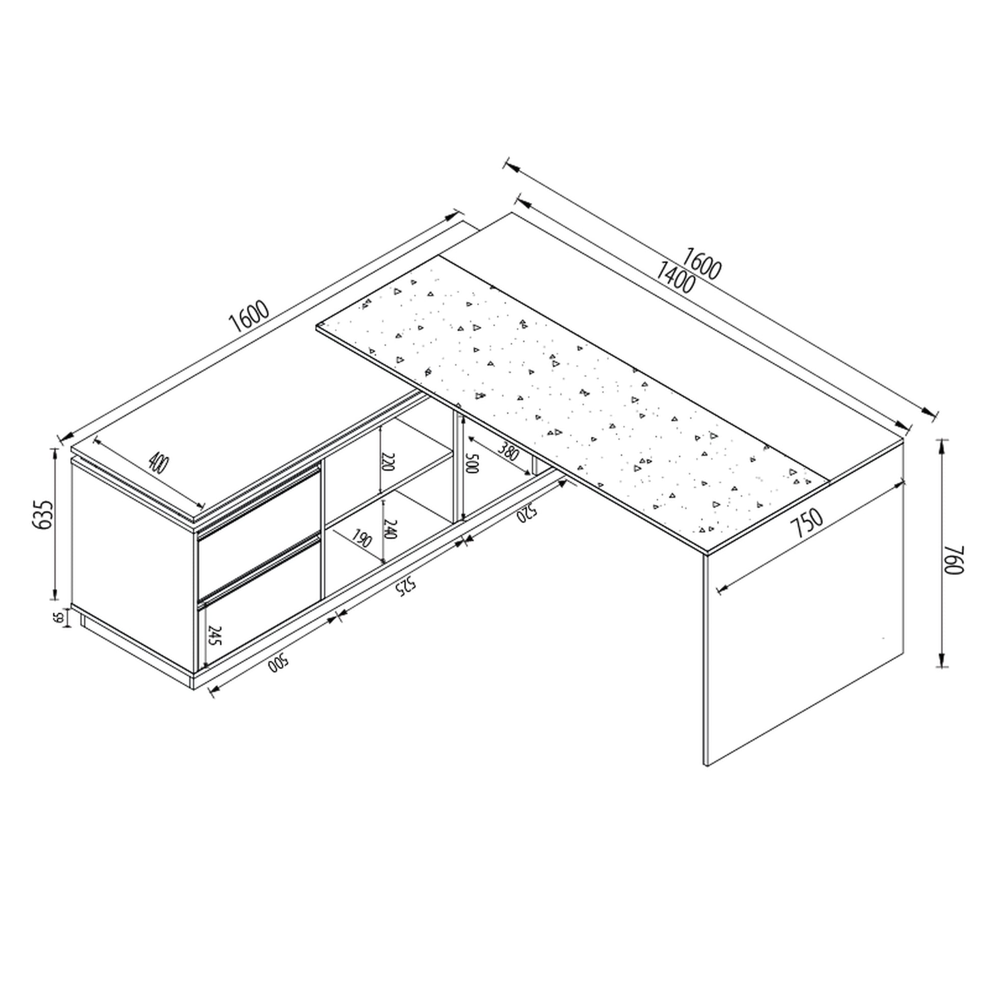 Desk Top Size: 1400(W) x 750(D) x 760(H) mm
